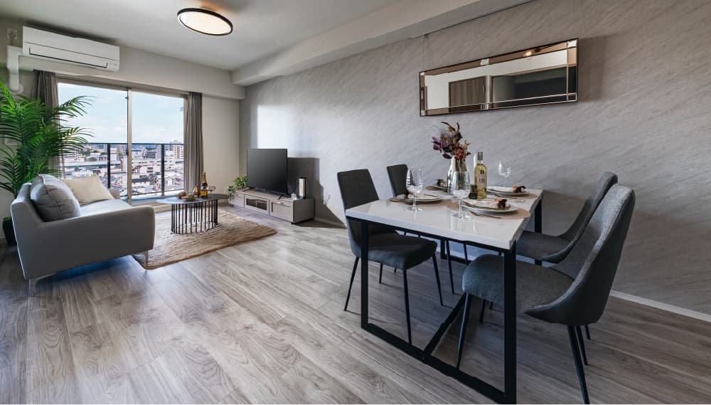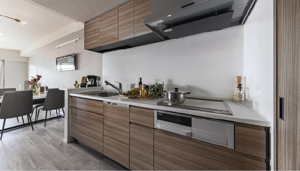 来場予約はこちら 資料請求はこちら ※掲載の写真はグランクレアいいねタウン瑞穂マンションギャラリー内のAタイプモデルルームを撮影(2023年10月)したもので一部オプション仕様(有償・受付に期限がございます)が含まれている他、家具・備品等に関しては配置例を示したもので販売価格には含まれません。